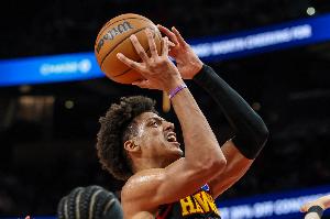 本赛季至今,杰伦·约翰逊场均23.7分10.4篮板8.4助攻1.4抢断。
