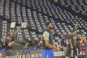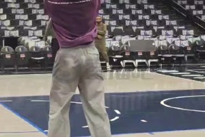看来恢复得很不错!欧文赛前投篮热身训练,汗水已湿透衣服!