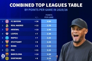 巴萨掉队!德转更新本赛季五大联赛场均拿分榜:仁皇枪分列前三