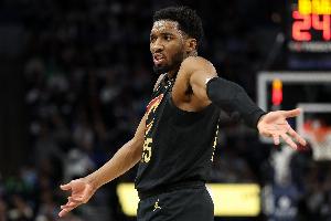 没进也挺帅的!米切尔滞空满弓战斧炸扣 直接砸到篮筐上了
