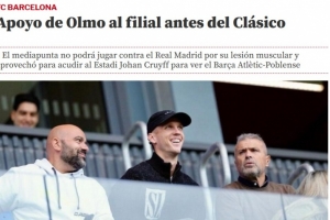 比目鱼肌受伤无缘国家德比!奥尔莫前往观看巴萨B队的比赛