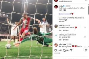 38岁瓦尔迪社媒晒照:花了点时间,但总算打入克雷莫内塞首球了