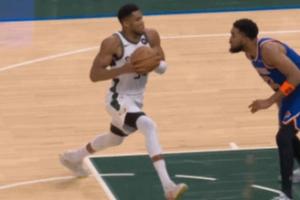 露馅了!回放显示 字母哥这个上篮走了几步?