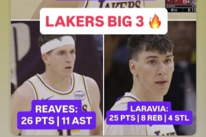 拉拉维亚转发湖人“三巨头”数据:自己+东契奇和里夫斯