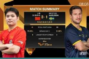 体育资讯10月2日讯 2025年WTT中国大满贯男单1/8决赛,林诗栋3-1克里斯蒂安-卡尔森,晋级八强。