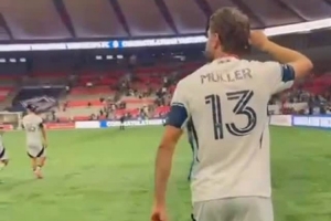 体育资讯10月2日讯 加拿大冠军杯决赛,穆勒点射破门,帮助温哥华白浪4-2击败温哥华FC,捧起冠军奖杯。