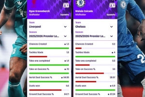 体育资讯10月4日讯 本轮英超利物浦将迎战切尔西,数据网站Squawka也盘点了两队中场铁腰赫拉芬贝赫与凯塞多在本赛季英超场均数据,具体如下: