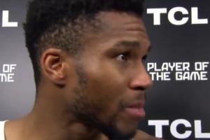 赛后,希腊球星扬尼斯-阿德托昆博在接受采访时眼里包含热泪。