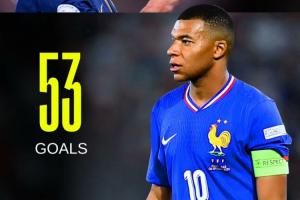 本场比赛姆巴佩连过数人抽射破门,国家队近5场5球4助,生涯93场已有53球,距队史射手王吉鲁(57球)仅差4球。