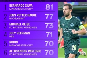 体育资讯10月23日讯 本赛季欧冠联赛阶段已战罢3轮,Squawka统计了到目前为止球员完成进攻三区传球次数榜,曼城中场B席81次第一,博德闪耀攻击手海于格77次第二。