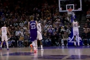 终于等到!吉莱斯皮点到篮板推反击 布克双手飞扣反超比分!