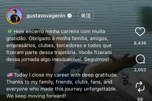 前辽足外援古斯塔沃社媒自宣退役,效力39场打入11球助攻9次
