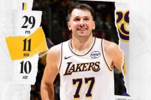 29+11+10!湖人官方发布东契奇三双数据海报:生涯第83次三双