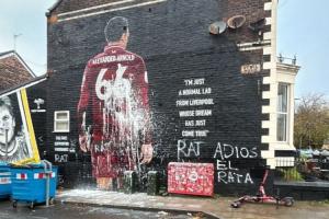 阿诺德利物浦壁画今晨惨遭污损,被涂鸦大字:“老鼠、再见吧”
