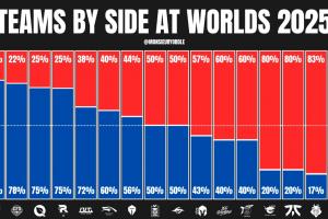 外媒统计S赛各队红蓝占比:GEN蓝色占比80%;T1红色占比86%