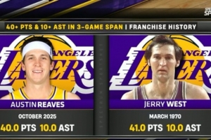 里夫斯三场比赛场均40分10助 湖人队史第二人&比肩杰里-韦斯特