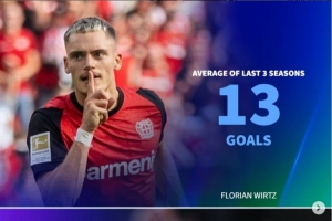 本赛季0球!前3年平均进球:维尔茨13球、奥蓬达21球、莫拉塔16球
