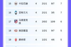 ⚔️欧冠第4轮积分:拜仁枪手国米全胜领跑!本菲卡贾府全败垫底