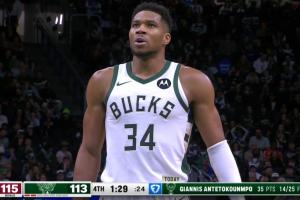 要命了!字母哥两罚不中 申京回头又迎着他抛投