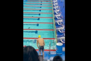 孙杨400自预赛最后一个离开泳池,并向看台鞠躬感谢观众